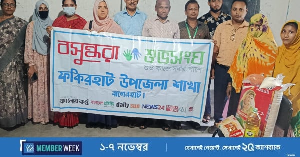 ফকিরহাটে অসহায় পরিবারকে খাদ্যসামগ্রী উপহার দিলো বসুন্ধরা শুভসংঘ