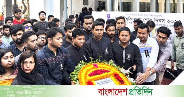 ঢাকা বিশ্ববিদ্যালয়ের শোক দিবস উপলক্ষে জগন্নাথ হলের অক্টোবর স্মৃতিসৌধে শ্রদ্ধা নিবেদন করেছে বাংলাদেশ জাতীয়তাবাদী ছাত্রদল, ঢাকা বিশ্ববিদ্যালয় শাখা।