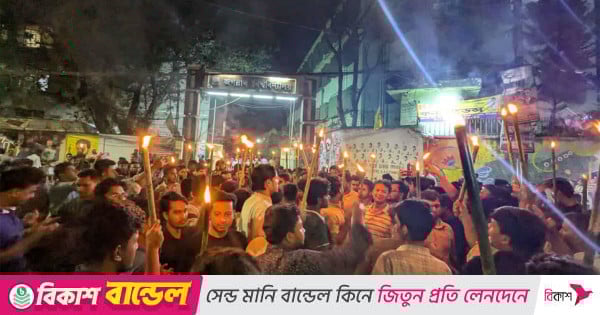 শুক্রবার (১৭ অক্টোবর) রাত সাড়ে নয়টায় বিশ্ববিদ্যালয়ের উত্তরাঞ্চলের শিক্ষার্থীদের আয়োজনে এ মশাল মিছিল অনুষ্ঠিত হয়। এতে অংশ নেন শাখা ছাত্রদল, ছাত্রশিবির, ছাত্র অধিকার পরিষদ, বাংলাদেশ গণতান্ত্রিক ছাত্র সংসদসহ বিভিন্ন সক্রিয় ছাত্র সংগঠনের নেতাকর্মীরা। মিছিলটি বিশ্ববিদ্যালয়ের গুচ্ছ ভাস্কর্য চত্বর থেকে শুরু হয়ে প্রধান ফটক, বাহাদুর শাহ পার্ক, শাঁখারি বাজার মোড়, রায়সাহেব বাজার মোড় হয়ে পুনরায় বিশ্বজিৎ চত্বরে এসে শেষ হয়।