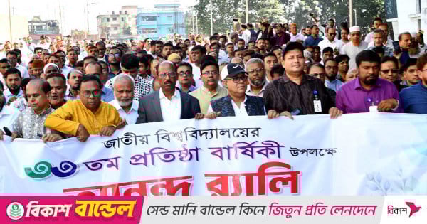 বর্ণাঢ্য আনন্দ র‌্যালি ও কেক কাটাসহ নানা কর্মসূচিতে জাতীয় বিশ্ববিদ্যালয়ের ৩৩তম প্রতিষ্ঠাবার্ষিকী উদযাপন করেছেন শিক্ষক, শিক্ষার্থী, কর্মকর্তা ও কর্মচারীরা।