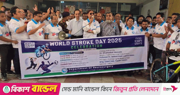 সোমবার(২৭ অক্টোবর) চট্টগ্রাম মেডিকেল কলেজ হাসপাতালের(চমেক) বিশ্ব স্ট্রোক দিবস উপলক্ষে আয়োজিত কর্মসূচির উদ্বোধনী অনুষ্ঠানে তিনি এসব কথা বলেন। চমেকের নিউরোসার্জারি বিভাগ এই অনুষ্ঠানের আয়োজন করে।