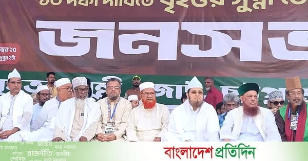 জনসভায় পীরে তরিকত মাওলানা সৈয়দ সাইফুদ্দীন আহমদ আল হাসানী বলেন, ‘বাংলাদেশের মানুষ আজ ঘরে বাইরে কোথাও নিরাপদ নয়। গত ১৫ মাসে সারা দেশে মব সৃষ্টি করে নিরীহ মানুষকে পিটিয়ে হত্যা, শিক্ষা প্রতিষ্ঠানে শিক্ষক হেনস্তা, মাজারে হামলা, অগ্নিসংযোগ ও লুটপাটসহ বহু ঘটনা ঘটেছে। বিভিন্ন স্থানে মসজিদে হামলা, জোর করে ইমাম খতিবদের মসজিদ থেকে বের করে দেওয়া, কবর থেকে লাশ উঠিয়ে জ্বালিয়ে ফেলা এবং কবরস্থানে অগ্নিসংযোগের মতো অমানবিক ঘটনাও ঘটেছে। এমনকি বিচারালয়ের বিচারকরাও আজ নিরাপদ নয়। মানুষ এসব থেকে মুক্তি চায়।’