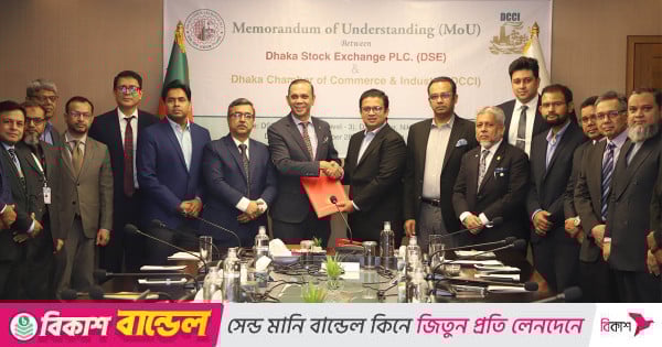 পুঁজিবাজারের স্বচ্ছতা, সক্ষমতা বৃদ্ধি ও বিনিয়োগকারীর আস্থা জোরদারে ঢাকা চেম্বার অব কমার্স অ্যান্ড ইন্ডাস্ট্রি (ডিসিসিআই) ও ঢাকা স্টক এক্সচেঞ্জ পিএলসির (ডিএসই) মধ্যে সমঝোতা স্মারক (এমওইউ) স্বাক্ষর হয়েছে।