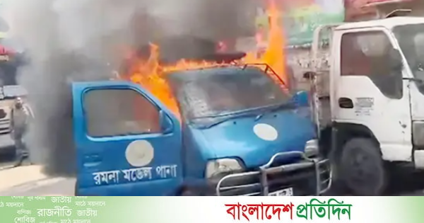রমনা থানার সামনে হঠাৎ পুলিশের গাড়িতে আগুন গাড়ির কাজ করার সময় রমনা থানার সামনে পুলিশের একটি গাড়িতে আগুন লাগে