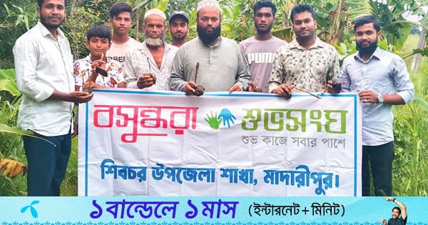 গ্রামবাংলার মাঠে, নদীর পাড়ে, খোলা প্রান্তরে বজ্রপাত যেন এক নিঃশব্দ আতঙ্ক। ‘তাল গাছ লাগান, বজ্রপাত ঠেকান’- এ স্লোগান সামনে রেখে মাদারীপুরের শিবচরে বসুন্ধরা শুভসংঘের উদ্যোগে তালবীজ বপন কর্মসূচির উদ্বোধন করা হয়েছে। গতকাল উপজেলার কাদিরপুর ইউনিয়নের ডিগ্রিরচর এলাকায় এ কর্মসূচি অনুষ্ঠিত হয়। প্রথম দিনেই রাস্তার ধারে অর্ধশতাধিক তালবীজ বপন করা হয়। বসুন্ধরা শুভসংঘ শিবচর শাখার সাধারণ সম্পাদক এস এম দেলোয়ার হোসাইন বলেন, প্রতি বছর দেশে বজ্রপাতে বহু প্রাণহানি ঘটে। প্রাকৃতিক দুর্যোগপূর্ণ আবহাওয়ায় তাল গাছ বজ্রপাত থেকে সুরক্ষা দেওয়ার পাশাপাশি পরিবেশ রক্ষায়ও গুরুত্বপূর্ণ ভূমিকা রাখে। এ ছাড়া তাল গাছের ফল পুষ্টিকর খাদ্য হিসেবে মানুষের চাহিদা পূরণ করে। তাই এ ধরনের কর্মসূচি সমাজে অনুকরণীয় দৃষ্টান্ত স্থাপন করবে। কর্মসূচিতে উপস্থিত ছিলেন বসুন্ধরা শুভসংঘ ইশরাকুর রহমান, আরফিন মোহাম্মদ সজিব, তনয় রায়, রফিকুল ইসলাম ও আল মামুন। বৃক্ষরোপণ শেষে স্থানীয় জনগণকে তাল গাছের পরিচর্যা ও যত্ন নেওয়ার জন্য অনুরোধ জানানো হয়।