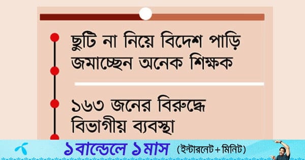 ছুটি না নিয়ে মাসের পর মাস স্কুলে অনুপস্থিত। কেউ পরিবার নিয়ে পাড়ি জমিয়েছেন ইউরোপ-আমেরিকাসহ বিশ্বের বিভিন্ন দেশে। চাকরি থেকে ইস্তফা না দিয়ে বিদেশ যাওয়ায় স্কুলগুলোতে দেখা দিয়েছে শিক্ষকশূন্যতা। এতে ব্যাহত হচ্ছে পাঠদান। ছুটি না নিয়ে দীর্ঘদিন অনুপস্থিত থাকায় গেল ২১ মাসে ১৬৩ জনের বিরুদ্ধে বিভাগীয় ব্যবস্থা নিয়েছে জেলা প্রাথমিক শিক্ষা অফিস। এর মধ্যে বেশির ভাগকে চাকরি থেকে বরখাস্ত করা হয়েছে। সূত্র জানায়, গত পাঁচ বছরে ইউরোপ, আমেরিকা ও কানাডায় পারিবারিক ও কাজের ভিসায় সিলেটের কয়েক হাজার মানুষ পাড়ি জমান। ভ্রমণ ভিসায় গিয়ে সেখানে ‘অ্যাসাইলাম’-এর আবেদন করে থেকে যান। এ ছাড়া যুক্তরাজ্যে কেয়ারগিভারসহ বিভিন্ন ধরনের কাজের ভিসায় পরিবার নিয়ে যান অনেকে। এর মধ্যে সরকারি প্রাথমিক বিদ্যালয়ের অনেক শিক্ষক ছিলেন। যাওয়ার সময়ও তারা কর্মস্থল থেকে ছুটি নেননি। কেউ কেউ ব্যক্তিগত প্রয়োজনে স্বল্পমেয়াদি ছুটি নিয়ে গোপনে বিদেশ চলে যান। এরপর মাসের পর মাস অনুপস্থিত থাকেন। এদিকে, ৬০ দিনের বেশি কর্মস্থলে যারা অনুপস্থিত তাদের ব্যাপারে তদন্তে নেমে প্রাথমিক শিক্ষা অফিস অনেক শিক্ষকের বিদেশ পাড়ি জমানোর তথ্য পায়। সূত্র মতে, গত পাঁচ বছরে সিলেট বিভাগে এভাবে ছুটি ছাড়াই সহস্রাধিক শিক্ষক বিদেশ চলে গেছেন। তদন্তসাপেক্ষে এদের বিরুদ্ধে বিভাগীয় ব্যবস্থা নেওয়া হয়েছে। প্রাথমিক শিক্ষা অফিস সূত্র জানায়, ২০২৪ সালের জানুয়ারি থেকে ২০২৫ সালের সেপ্টেম্বর পর্যন্ত ১৬৩ জন শিক্ষকের বিরুদ্ধে বিভাগীয় মামলা হয়েছে। এর মধ্যে ১৪০ জনের মামলা নিষ্পত্তি হয়েছে। আর ২৩ জনের মামলা চলমান।