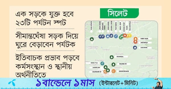 সূত্র জানান, বর্ডার ড্রাইভ হলে পর্যটকরা মাত্র দুই দিনে সিলেটের হযরত শাহজালাল ও শাহপরাণ (রহ.)-এর মাজার, আন্তর্জাতিক ক্রিকেট স্টেডিয়াম, লাক্কাতুড়া চা বাগান, বাইশটিলা, খাদিম রিসোর্ট, সাদাপাথর, বিছনাকান্দি, উতমাছড়া, দমদমছড়া, লক্ষণছড়া, পান্থুমাই, খাসিকম, জাফলং, তামাবিল, নলিউরি ফলস, ডিবিরহাওড়, জৈন্তাপুর, লালাখাল, রাতারগুলসহ ২৩টি পর্যটন স্পট ঘুরে দেখতে পারবেন। বর্তমানে এক দিনে দুই থেকে তিনটির বেশি স্পট ঘুরে দেখা সম্ভব হয় না।