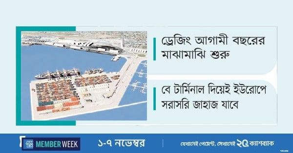 চট্টগ্রাম বন্দরের সবচেয়ে বড় প্রকল্প বে-টার্মিনালের ড্রেজিং আগামী বছরের মাঝামাঝি শুরু হতে পারে। আর এর মাধ্যমে এ প্রকল্পের প্রস্তাবিত তিনটি টার্মিনালের প্রথমটি ২০৩০ সালের মধ্যে চালু করা। এ আশাবাদ ব্যক্ত করেছেন চট্টগ্রাম বন্দর কর্তৃপক্ষের চেয়্যারম্যান রিয়ার অ্যাডমিরাল এস এম মনিরুজ্জামান। তিনি গতকাল বন্দর অডিটোরিয়ামে বেটার্মিনাল মেরিন ইনফ্রাস্ট্রাকচার ডেভেলপমেন্ট প্রজেক্টের জেনারেল মার্কেট এনগেজমেন্ট কনফারেন্স শেষে সাংবাদিকদের এ তথ্য জানান।