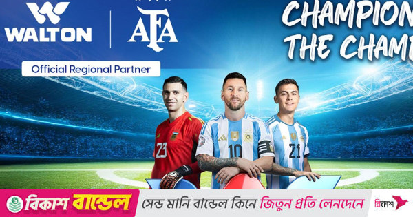 বিশ্বচ্যাম্পিয়ন আর্জেন্টিনা জাতীয় ফুটবল দলের সঙ্গে যুক্ত হয়েছে ইলেকট্রনিক্স ও প্রযুক্তি খাতের শীর্ষ ব্র্যান্ড ওয়ালটন। আর্জেন্টিনা দলের অফিশিয়াল রিজিওনাল স্পন্সর হলো প্রতিষ্ঠানটি। এর ফলে ওয়ালটন আর্জেন্টিনা দলের সব ধরনের ব্র্যান্ডিং স্বত্ব লাভ করেছে। এখন থেকে ওয়ালটনের বিভিন্ন পণ্যের ব্র্যান্ডিং কার্যক্রমে দেখা যাবে মেসি-মার্টিনেজদের।