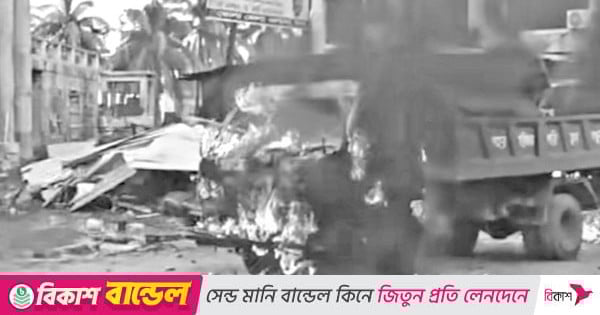 উচ্ছেদ অভিযানে হামলা তিন গাড়িতে আগুন