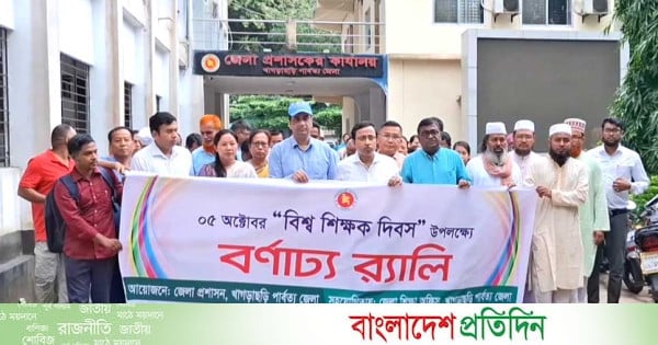 বিশ্ব শিক্ষক দিবস ২০২৫ উপলক্ষ্যে খাগড়াছড়িতে বর্ণাঢ্য র্যালি ও আলোচনা সভার আয়োজন করা হয়েছে। রবিবার (৫ অক্টোবর) সকাল ১০টায় জেলা প্রশাসকের কার্যালয় থেকে একটি র্যালি বের হয়ে শহরের বিভিন্ন সড়ক প্রদক্ষিণ করে। পরে জেলা প্রশাসকের সম্মেলন কক্ষে অনুষ্ঠিত হয় আলোচনা সভা।