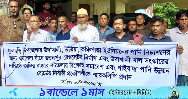 গাইবান্ধার ফুলছড়িতে রেগুলেটর নির্মাণ ও খাল সংস্কারের দাবিতে বিক্ষোভ সমাবেশ অনুষ্ঠিত হয়েছে।