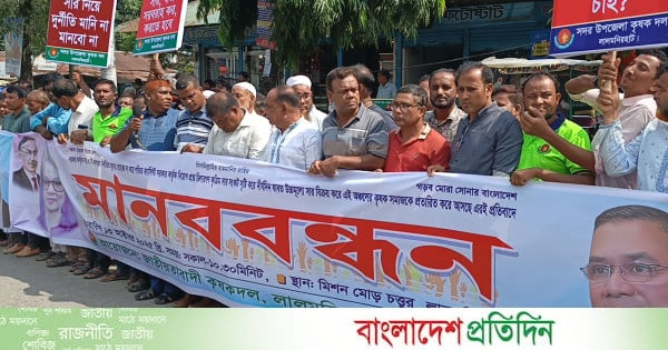 সারের কৃত্রিম সংকট ও উচ্চমূল্য সরবরাহের বিরুদ্ধে প্রতিবাদে সোমবার (১৩ অক্টোবর) দুপুরে লালমনিরহাট শহরের প্রাণকেন্দ্র মিশনমোড চত্ত্বরে বাংলাদেশ জাতীয়তাবাদী কৃষক দলের আয়োজনে একটি প্রতিবাদী মানববন্ধন অনুষ্ঠিত হয়েছে।