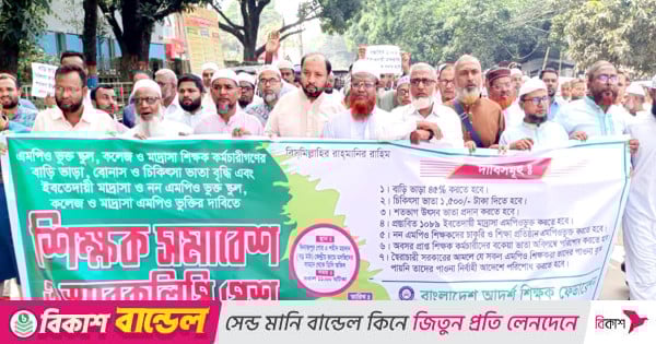 শিক্ষকদের দাবিগুলোর মধ্যে রয়েছে এমপিওভুক্ত স্কুল, কলেজ ও মাদ্রাসার শিক্ষক-কর্মচারীদের বাড়িভাড়া, বোনাস ও চিকিৎসা ভাতা বাড়াতে হবে। অবসরপ্রাপ্ত শিক্ষকদের বকেয়া ভাতা দ্রুত পরিশোধ করতে হবে।