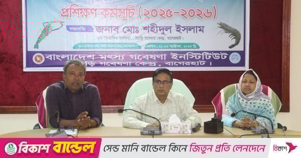 বাগেরহাটে তিন দিনব্যাপী উন্নত পদ্ধতিতে চিংড়ি চাষ ও খাদ্য ব্যবস্থাপনা বিষয়ে কর্মশালা শুরু হয়েছে। মঙ্গলবার সকালে বাগেরহাট চিংড়ি গবেষণা কেন্দ্রের আয়োজনে এই কর্মশালার উদ্বোধন করেন কেন্দ্রের উর্ধ্বতন বৈজ্ঞানিক কর্মকর্তা মো. শহীদুল ইসলাম।