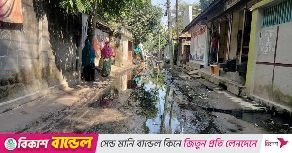 স্কুল ছাত্র মাহি জানান, নোংরা পানি পাড়ি দিয়েই যেতে হয় স্কুলে। অনেক সময় পিছলে পড়ে বই খাতা নষ্ট হয়ে যায়। আমাদের চলাচলে খুব কষ্ট হয়।