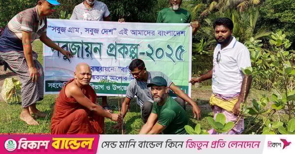 সোমবার দিনব্যাপী মৎস্য বন্দর মহিপুর আলিপুর, কুয়াকাটার বৌদ্ধ বিহার ও খাস পুকুর পাড়ে তারা চারা গাছ রোপণ করেন।