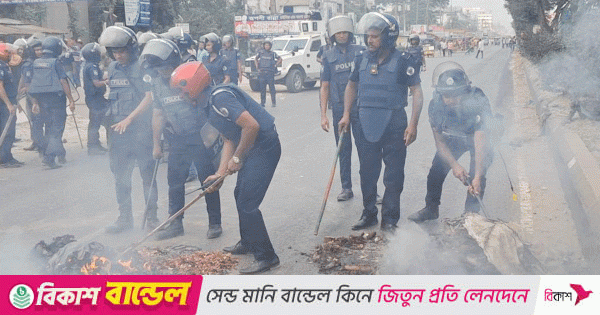 প্রায় আধা ঘণ্টা পর পুলিশ সাউন্ড গ্রেনেড নিক্ষেপ করে শ্রমিকদের মহাসড়ক থেকে সরায়, এতে যান চলাচল স্বাভাবিক হয়। তবে এক ঘণ্টা পর শ্রমিকরা বর্জ্য বস্তাবন্দি করে আগুন ধরিয়ে পুনরায় মহাসড়ক অবরোধ করেন, যা ২০ মিনিট স্থায়ী হয়। পরে শ্রীপুর থানা ও শিল্প পুলিশ শ্রমিকদের সঙ্গে আলোচনা করে দুপুর পৌনে ১টার দিকে মহাসড়কের যান চলাচল স্বাভাবিক করে।
