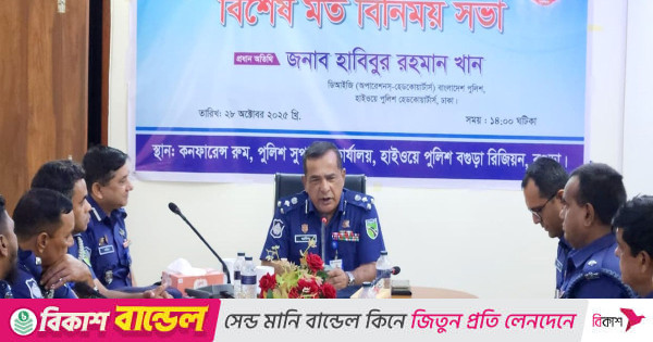 হাইওয়ে পুলিশ হেডকোয়ার্টার্স এর ডিআইজি (অপারেশনস-হেডকোয়টার্স) হাবিবুর রহমান খান এর সঙ্গে হাইওয়ে পুলিশ বগুড়া রিজিয়নের মতবিনিময় সভা অনুষ্ঠিত হয়েছে। মঙ্গলবার (২৮ অক্টোবর) হাইওয়ে পুলিশ বগুড়া রিজিয়ন কনফারেন্স রুমে এ সভার আয়োজন করা হয়।