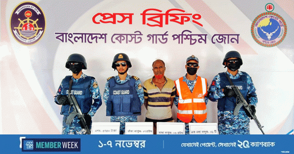 আটক কামরুল সরদার (৫৫) সাতক্ষীরা জেলার আশাশুনি এলাকার বাসিন্দা।