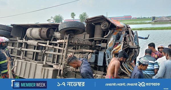 মোংলা–খুলনা মহাসড়কে বাস খাদে, দুই যাত্রী নিহত