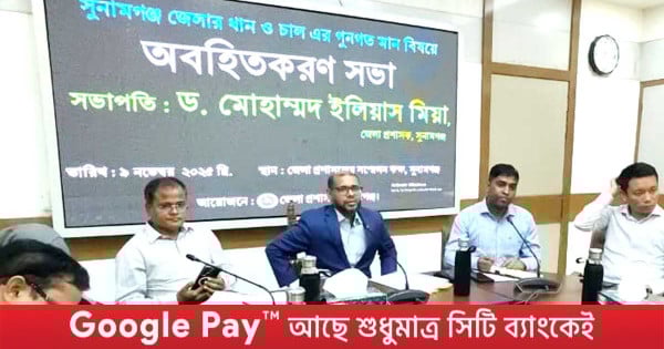 সুনামগঞ্জের ধান ও চালে আর্সেনিকের উপস্থিতি মানব শরীরের সহনীয় মাত্রার তুলনায় অনেক কম রয়েছে বলে জানিয়েছেন জেলা প্রশাসক ড. মোহাম্মদ ইলিয়াস মিয়া।