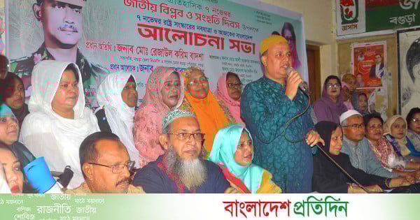 বগুড়ায় জাতীয় বিপ্লব ও সংহতি দিবস উপলক্ষে ৭ নভেম্বর রাষ্ট্র সংস্কারের নবযাত্রা ও আজকের বাংলাদেশ শীর্ষক আলোচনা সভা অনুষ্ঠিত হয়েছে। সোমবার (১০ নভেম্বর) সন্ধ্যায় শহরের নবাববাড়ী দলীয় কার্যালয়ে জেলা মহিলা দল এ সভার আয়োজন করে।