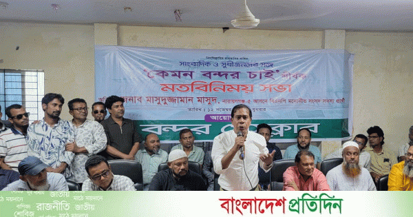 নারায়ণগঞ্জে সাংবাদিক ও সুধীজনদের অংশগ্রহণে ‘কেমন বন্দর চাই’ শীর্ষক মতবিনিময় সভা অনুষ্ঠিত হয়েছে। বুধবার (১২ নভেম্বর) বিকেলে বন্দর প্রেসক্লাবে এই মতবিনিময় সভার আয়োজন করা হয়।