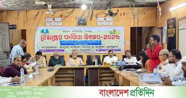 ময়মনসিংহের ভালুকায় “বাংলা কবিতায় হেমন্ত” স্লোগানকে সামনে রেখে হেমন্তের কবিতা উৎসব ২০২৫ অনুষ্ঠিত হয়েছে। শুক্রবার (১৪ নভেম্বর) বিকেলে ভালুকা প্রেসক্লাব মিলনায়তনে ভালুকা সাহিত্য সংসদ ও ভালুকা প্রেসক্লাব যৌথভাবে আয়োজন করে এ উৎসব।