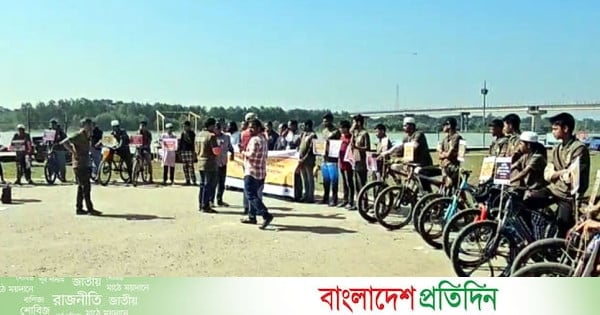 জলবায়ু ন্যায়বিচারের জন্য বিশ্বব্যাপী কর্মদিবস উপলক্ষে পটুয়াখালীর কলাপাড়ায় সাইকেল র্যালি ও মানববন্ধন অনুষ্ঠিত হয়েছে। শনিবার বেলা ১১টায় স্বেচ্ছাসেবী সংগঠন আমরা কলাপাড়াবাসীর উদ্যোগে হেলিপ্যাড মাঠে এর আয়োজন করে।
