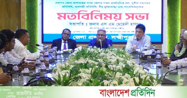 লক্ষ্মীপুরে বিভিন্ন রাজনৈতিক ও সুশীল সমাজের ব্যক্তিবর্গের সাথে নবাগত জেলা প্রশাসকের মতবিনিময় সভা অনুষ্ঠিত হয়েছে। বুধবার (১৯ নভেম্বর) দুপুরে জেলা প্রশাসক সম্মেলন কক্ষে জেলা প্রশাসনের আয়োজনে এ সভার আয়োজন করা হয়। সভায় সভাপতিত্ব করেন জেলা প্রশাসক এসএম মেহেদী হাসান।
