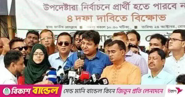 শুক্রবার দুপুরে রাজধানীর জাতীয় প্রেসক্লাবের সামনে ‘উপদেষ্টাদের নির্বাচনে অংশগ্রহণের বিরোধিতা ও নির্বাচনের তারিখ ঘোষণার দাবি’তে এক বিক্ষোভ সমাবেশে তিনি এসব কথা বলেন। সমাবেশের আয়োজন করে ‘জাতীয় নাগরিক জোট’।