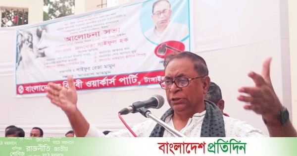 বিপ্লবী ওয়ার্কার্স পার্টির সাধারণ সম্পাদক সাইফুল হক বলেছেন, যে কােন মূল্যে গণঅভ্যুত্থানের গণ-আকাঙ্ক্ষা বাস্তবায়ন করতে হবে। এবার অধিকার ও ইনসাফ প্রতিষ্ঠা করা না গেলে অদূর ভবিষ্যতে আর একটি গণঅভ্যুত্থান অপরিহার্য হয়ে উঠবে। সংবিধানসহ প্রশাসনের রাজনৈতিক সংস্কারের পাশাপাশি লুটেরা দুর্বৃত্ত অর্থনীতির অবসান ঘটাতে না পারলে কোন সংস্কারই টেকসই হবে না।