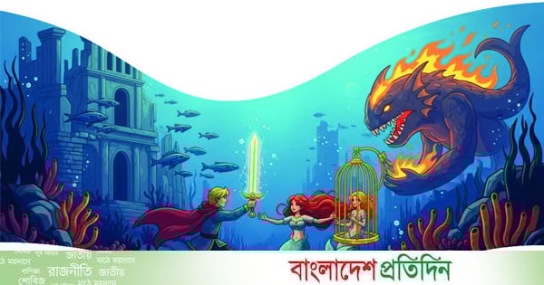 নীলপরী বিরক্ত ভরা কণ্ঠে রাজপুত্র ইভানকে বলল, তুমি আমার ঘরে ঢুকে আমার ঘুম ভাঙালে কেন? রাজপুত্র তখন নীলপরীকে সব খুলে বলে। নীলপরী তখন কিছুক্ষণ চোখ বুজে ধ্যান করে বলল, ওই বাঘটাই শয়তান জলরাক্ষস। সে বিভিন্ন সময় বিভিন্ন রূপ ধারণ করতে পারে। নীলপরী তখন বলল, তুমি কি সত্যিই জলরাক্ষসকে হত্যা করে মৎস্যকন্যা রূপাঞ্জল ডিউকে উদ্ধার করতে চাও? রাজপুত্র ইভান বলল, হ্যাঁ, হ্যাঁ চাই। নীলপরী তখন রাজপুত্র ইভান জোন্সকে একটা তলোয়ার দিয়ে বলল, এই নাও তলোয়ার, এর নাম একরার। এটি থেকে শক্তিশালী আলোকরশ্মি বিচ্ছুরিত হয়। এই আলোকরশ্মির সামনে জলরাক্ষস টিকতে পারবে না। আর এই নাও একটা লাঠি। এই লাঠিটা মাটিতে ফেলে দিলেই এটি উভচর যান হয়ে যাবে। তুমি জলে, স্থলে, আকাশে যে কোনো জায়গায় এর সাহায্যে যেতে পারবে। রাজপুত্র ইভান তখন নীলপরীকে অনেক ধন্যবাদ জানিয়ে পথে নামল। সে লাঠিটা মাটিতে ফেলতেই একটা বড়সড়ো উভচর যান হয়ে গেল। রাজপুত্র ইভান তখন উভচর যানটিকে বাল্টিক সাগরের তলদেশে নিয়ে যেতে বলল। তারপর তারা বাল্টিক সাগরের তলদেশে সোনার খাঁচায় বন্দি মৎস্যকন্যাদের রাজকুমারী রূপাঞ্জল ডিউকে খুঁজতে লাগল। খুঁজতে খুঁজতে এক দিন রাজপুত্র ইভান একটা প্রকাণ্ড রাজপ্রাসাদের সামনে সোনার খাঁচার দেখা পেয়ে গেল। সঙ্গে সঙ্গেই সোনার খাঁচার কাছে গিয়ে রূপাঞ্জল ডিউকে বলল, তুমি একটুও ভয় পেও না। আমি এক্ষুণি তোমাকে উদ্ধার করছি। এই বলে সে একরার নামের তলোয়ার দিয়ে আলোকরশ্মির বিচ্ছুরণ ঘটিয়ে সোনার খাঁচার তালা খুলে ফেলল। সঙ্গে সঙ্গে রূপাঞ্জল ডিউ বাইরে বেড়িয়ে এলো। সে রাজপুত্র ইভানের দিকে মুগ্ধ দৃষ্টিতে তাকিয়ে রইল। রাজপুত্র ইভানেরও ততক্ষণে রূপাঞ্জল ডিউকে ভালো লেগে গেছে। এর মধ্যেই ঘটল এক ঘটনা। রাজপুত্র ইভান যখন একরার নামের তলোয়ারটি দিয়ে সোনার খাঁচার তালা গলিয়ে ফেলছিল, জলরাক্ষস জেরেনিমোর কাছে খাঁচাটি থেকে শব্দ তরঙ্গের মাধ্যমে বার্তা চলে গেল। জেরেনিমো সব কাজ ফেলে সাগর তলের রাজপ্রাসাদের কাছে আসতে লাগল এবং দেখতে দেখতে সে সেখানে এসে পৌঁছে গেল। এসেই রাজপুত্র ইভানকে দেখে জলরাক্ষস জেরেনিমো গর্জে উঠল। সে মুখ দিয়ে এক ঝলক আগুন রাজপুত্রের দিকে ছুড়ে মারল। রাজপুত্র ইভানও তার একরার তলোয়ার জলরাক্ষসটার দিকে মেলে ধরল। একরার তলোয়ার থেকেও একঝলক আলোকরশ্মি জলরাক্ষসের ছুড়ে দেওয়া আগুনের দিকে ছুটে গেল। শুরু হলো দুই আলোকরশ্মির যুদ্ধ। ধীরে ধীরে একরার তলোয়ারের আলোকরশ্মি বিজয়ী হতে লাগল। জলরাক্ষসের ছোড়া আগুনের রশ্মি পিছিয়ে যেতে লাগল। পেছাতে পেছাতে আগুনের রশ্মি জলরাক্ষসের শরীরে পৌঁছে যেতেই তার গায়ে আগুন লেগে গেল। জলরাক্ষস আগুনের জ্বালায় চেঁচাতে চেঁচাতে জ্বলে, পুড়ে ছারখার হয়ে মারা গেল। রাজপুত্র ইভা