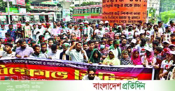 জুলাই ঘোষণাপত্র সংশোধন ও সংযোজনের দাবিতে শাহবাগে বিক্ষোভ ও সচিবালয়ের উত্তর গেটে অবস্থান নিয়েছেন জুলাই যোদ্ধারা। গতকাল দুপুরের দিকে জুলাই যোদ্ধারা সচিবালয়ের উত্তর গেট দিয়ে ভিতরে প্রবেশ করতে চাইলে পুলিশ তাদের বাধা দেয়। এ সময় তাদের অবস্থান ঘিরে শতাধিক পুলিশের উপস্থিতি দেখা যায়। ‘জুলাই যোদ্ধা সংসদ’ নামের একটি সংগঠনের ব্যানারে দেশের বিভিন্ন এলাকা থেকে অনেক জুলাই যোদ্ধা সচিবালয়ের সামনে এসে অবস্থান নেন। এ সময় তারা বিক্ষোভ মিছিল করেন। মিছিলে ‘আবু সাঈদ মুগ্ধ, শেষ হয়নি যুদ্ধ’ স্লোগান দিতে দেখা গেছে। মিছিলে সংগঠনের পক্ষ থেকে পাঁচ দাবি তুলে ধরা হয়েছে। দাবিগুলো জুলাই শহীদদের ‘জাতীয় বীর’ এবং আহতদের ‘বীর’ খেতাব দিয়ে রাষ্ট্রীয় স্বীকৃতি ও আইনি সুরক্ষা নিশ্চিত করতে হবে; শহীদ পরিবার এবং আহতদের চিকিৎসা, পুনর্বাসন ও মাসিক সম্মাননা আজীবন চলমান রাখতে হবে; অবিলম্বে জুলাই ঘোষণাপত্র সংশোধন করে তা জুলাই সনদের মধ্যে স্থায়ীভাবে যুক্ত করে তার আইনি ভিত্তি নিশ্চিত করতে হবে; জুলাই গণহত্যার বিচার আন্তর্জাতিক আদালতে বাস্তবায়ন করতে হবে এবং আওয়ামী লীগসহ তাদের সহযোগী দলগুলোকে নিষিদ্ধ করতে হবে; দেশের যে কোনো সিদ্ধান্ত নেওয়ার সময় জুলাই যোদ্ধাদের মতামতকে গুরুত্ব দিতে হবে। এ সময় সংগঠনটির কেন্দ্রীয় নির্বাহী কমিটির সদস্য সালমান হোসেন জানান, ১১ জন প্রতিনিধি একটি স্মারকলিপি জমা দেওয়ার জন্য সচিবালয়ের ভিতরে গিয়েছেন। মো. আবদুল হাকিম হাবিব নামের একজন বলেন, সকাল ১০টায় আমরা প্রথমে শাহবাগ মোড়ে অবস্থান করেছি। এরপর দুপুর পৌনে ১২টার দিকে স্মারকলিপি জমা দেওয়ার জন্য আমরা সচিবালয়ের ভিতরে যেতে চেয়েছি। কিন্তু পুলিশ আমাদের উত্তর গেটে আটকে দিয়েছে। আমাদের ১১ জন প্রতিনিধি সচিবালয়ের ভিতরে গিয়েছে। জুলাই যোদ্ধাদের অবস্থান ও বিক্ষোভকে কেন্দ্র করে যে কোনো ধরনের অপ্রকৃতকর ঘটনা মোকাবিলায় মোতায়েন হয় আইনশৃঙ্খলা বাহিনী।