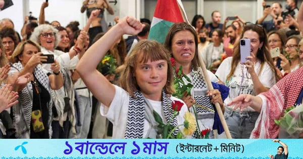 ইসরায়েল থেকে মুক্তির পর সুমুদ ফ্লোটিলার শতাধিক কর্মীর সঙ্গে সোমবার গ্রিসে পৌঁছেছেন সুইডিশ জলবায়ু আন্দোলনের নেত্রী গ্রেটা থুনবার্গ। তাদের বহনকারী বিশেষ প্রত্যাবাসন ফ্লাইটটি এথেন্স আন্তর্জাতিক বিমানবন্দরে অবতরণ করে, যেখানে শত শত উল্লসিত জনতা তাদের বরণ করে নেয়।