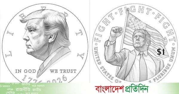 যুক্তরাষ্ট্রের ২৫০তম স্বাধীনতা দিবস উদ্যাপন উপলক্ষে ২০২৬ সালে বাজারে আসতে যাওয়া এক ডলারের স্মারক মুদ্রায় মার্কিন প্রেসিডেন্ট ডোনাল্ড ট্রাম্পের ছবি রাখার খসড়া প্রকাশ পেয়েছে। এই খসড়া নিয়ে ইতোমধ্যেই দেশেবিদেশে শুরু হয়েছে তুমুল বিতর্ক। যুক্তরাষ্ট্রের ট্রেজারার ব্র্যান্ডন বিচ শনিবার সামাজিক যোগাযোগমাধ্যম এক্সে পোস্ট করে লিখেছেন, নকল খবর নয়। এই প্রাথমিক খসড়াগুলো সত্য। যুক্তরাষ্ট্রের ২৫০তম জন্মদিন ও প্রেসিডেন্টকে সম্মান জানাতেই এগুলো তৈরি। তিনি আরও বলেন, সরকারি কার্যক্রম বন্ধ থাকায় (শাটডাউন) এখনই বিস্তারিত জানানো সম্ভব নয়, তবে শিগগিরই আরও তথ্য প্রকাশ করা হবে। প্রাথমিক খসড়া অনুযায়ী, সামনের অংশে ট্রাম্পের মুখাবয়বের এক পাশ থাকবে। ওপরে লেখা থাকবে ‘লিবার্টি’ বা ‘স্বাধীনতা’। নিচে লেখা থাকবে ‘ইন গড উই ট্রাস্ট’। পাশে খোদাই করা থাকবে ১৭৭৬-২০২৬। মুদ্রার পেছনের দিকে দেখা যাবে ২০২৪ সালের বাটলার, পেনসিলভেনিয়া হত্যাচেষ্টার পর ট্রাম্পের মুষ্টিবদ্ধ হাত তোলার দৃশ্য। যার ওপরে লেখা থাকবে ‘ফাইট ফাইট ফাইট’। আর ট্রাম্পের পেছনে উড়বে যুক্তরাষ্ট্রের পতাকা। তবে যুক্তরাষ্ট্রের আইন অনুযায়ী, কোনো জীবিত বা সদ্য মৃত প্রেসিডেন্টের ছবি মুদ্রায় ব্যবহার করা অবৈধ।