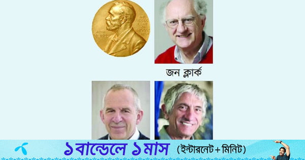 এ বছর পদার্থবিজ্ঞানে যৌথভাবে নোবেল পেয়েছেন জন ক্লার্ক, মিশেল দেভরেট ও জন এম মার্টিনিস। গতকাল যুক্তরাষ্ট্রের ইউনিভার্সিটি অব ক্যালিফোর্নিয়ার এই তিন গবেষকের নাম ঘোষণা করে নোবেল কমিটি। বৈদ্যুতিক সার্কিটে ম্যাক্রোস্কোপিক কোয়ান্টাম মেকানিক্যাল টানেলিং ও শক্তি পরিমাপ আবিষ্কারের জন্য এবারের পদার্থবিজ্ঞানে নোবেল পেলেন তারা। পদার্থবিজ্ঞানের একটি বড় প্রশ্ন হলো, কত বড় কোনো বস্তু বা ব্যবস্থা কোয়ান্টাম জগতে প্রভাব ফেলতে পারে। এ বছর নোবেলজয়ীরা এমন একটি বৈদ্যুতিক সার্কিটে পরীক্ষা-নিরীক্ষা করেছেন, যা হাতে ধরা যায়। সেই সার্কিটে তারা কোয়ান্টাম টানেলিং এবং শক্তির নির্দিষ্ট স্তর দুটি বিষয়ই দেখিয়েছেন।