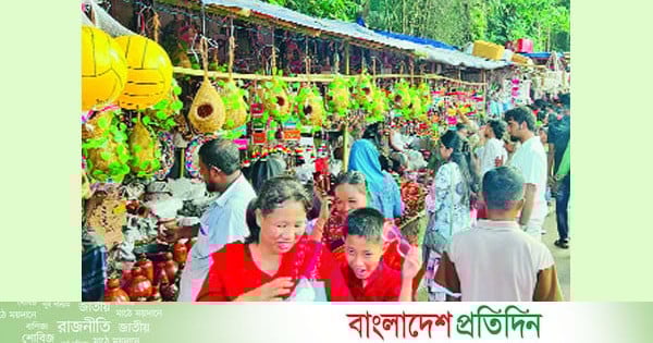 পাহাড় যেন এখন উৎসবের নগরী। কঠিন চীবরদানের উৎসব শেষ। কিন্তু শেষ হয়নি আমেজ। কারণ এখনো চলছে জগদ্ধাত্রী পূজা। মেলায় বাঁশির সুর যেমন মানুষের মন কেড়েছে, তেমনি হরেকরকম সামগ্রীর দোকানও আকর্ষণ করছে দর্শনার্থীদের। শহরের কোর্ট বিল্ডিং এলাকা থেকে বনরূপা পর্যন্ত চলছে জগদ্ধাত্রী পূজার মেলা। মেলাকে ঘিরে আনন্দে উচ্ছ্বসিত স্থানীয়রা। মেলাস্থলে তিল পরিমাণ জায়গা খালি নেই। ক্ষুদ্র নৃগোষ্ঠী ও বাঙালিদের উপস্থিতিতে যেন মিলনমেলায় পরিণত হয়েছে। রাঙামাটি শহরের ২০০টির অধিক স্টল বসেছে। প্রতিটি স্টলে রাখা হয়েছে ভিন্ন সামগ্রী। জামাকাপড়, শাড়ি, চুড়ি, বাচ্চাদের খেলনা, ঘর সাজানোর জিনিসপত্র বেশি আকর্ষণ করছে দর্শনার্থীদের। তবে শৃঙ্খলা ধরে রাখতে বাড়ানো হয়েছে পুলিশের বিশেষ নজরদারি।মেলায় ঘুরতে আসা সাদিয়া জানায়, রাঙামাটি শহরে বছরে একবারই বসে মেলা। সেটা হচ্ছে এ জগদ্ধাত্রী পূজার মেলা। এ মেলায় শুধু হিন্দু ধর্মাবলম্বীরা নয়, মুসলিম, বৌদ্ধসহ সব সম্প্রদায়ের নারী-পুরুষের উপস্থিতি থাকে। এটা দেখতে অনেক ভালো লাগে। একই কথা জানালেন মেলার আর এক দর্শনার্থী মাহিয়া জান্নাত। তিনি বলেন, রাঙামাটি পাহাড়ি অঞ্চল হওয়ায় এখানে সব সময় মেলা বসে না। তবে চীবরদান ও জগদ্ধাত্রী পূজার মেলাটা পুরো রাঙামাটিতে আনন্দ তৈরি করে। মেলায় কম দামে হরেকরকম জিনিস পাওয়া যায়- এটাই বেশি ভালো লাগে। রাঙামাটি পুলিশ সুপার এস এম ফরহাদ হোসেন বলেন, আমরা চেষ্টা করছি রাঙামাটিতে শৃঙ্খলাভাবে মেলাটা যেন শেষ হয়। মেলা চলাকালীন কোথাও যেন কোনো অপ্রীতিকর ঘটনা না ঘটে তার জন্য বিশেষ সতর্কতা অবলম্বন করা হয়েছে।
