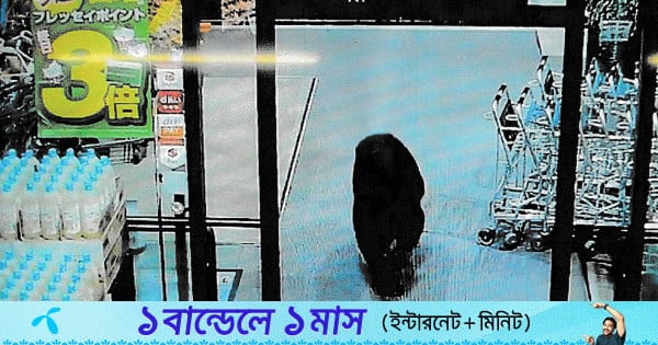 বুধবার জাপানের মধ্যাঞ্চলে একটি সুপারমার্কেটের ভেতরে ঢুকে পড়ে পূর্ণবয়স্ক ভাল্লুক। ফলে দোকানে উপস্থিত ক্রেতাদের মধ্যে আতঙ্ক ছড়িয়ে পড়ে। প্রায় ৪.৫ ফুট লম্বা (১.৪ মিটার) ভাল্লুকটি চার মিনিট দোকানের ভেতরে ছিল। এই ঘটনায় দুই বয়স্ক ব্যক্তি সামান্য আহত হয়েছেন বলে আঞ্চলিক পুলিশ ও ফায়ার সার্ভিস কর্মকর্তারা জানিয়েছেন।