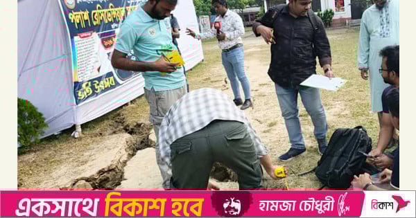 ভূমিকম্পের উৎপত্তিস্থল নরসিংদীতে বিভিন্ন এলাকার মাটিতে ফাটল থেকে নমুনা সংগ্রহ করেছে ঢাকা বিশ্ববিদ্যালয়ের ভূতত্ত্ব বিভাগ।