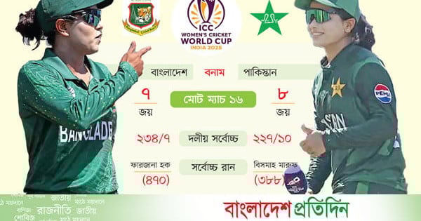 নারী বিশ্বকাপ শুরুর দিন হঠাৎ হৃদ্রোগে আক্রান্ত হয়েছিলেন বাংলাদেশের কোচ সারোয়ার ইমরান। দ্রুত তাকে হাসপাতালে নেওয়া হয়। চিকিৎসা শেষে হাসপাতাল থেকে ছাড়া পেয়ে দলের সঙ্গে যোগও দিয়েছেন ইমরান। পাকিস্তানের বিপক্ষে বিশ্বকাপে নিগারদের সূচনা ম্যাচের ডাগআউটে থাকতে পারেন। সুস্থ হয়ে কোচের ফিরে আসায় নিগার বাহিনী এখন উজ্জীবিত। বাংলাদেশ সময় বেলা সাড়ে ৩টায় কলম্বোর রানা প্রেমাদাসা স্টেডিয়ামে মুখোমুখি হবে বাংলাদেশ ও পাকিস্তান। আজ দুই দল মুখোমুখি হওয়ার আগে পরস্পরের বিপক্ষে খেলেছে ১৬ বার। বাংলাদেশের সাত জয়ের বিপরীতে পাকিস্তানের আটটি। একটি ‘টাই’ হয়েছিল। লাহোরে দুই দলের সর্বশেষ ম্যাচটি অবশ্য জিতেছিল পাকিস্তান। তিন বছর পর ফের বিশ্বকাপ খেলছেন নিগার সুলতানা, শারমিন আক্তার সুপ্তা, ফারজানা হক, নাহিদা আক্তাররা। নারী বিশ্বকাপে বাংলাদেশের অভিষেক ২০২২ সালে। নিউজিল্যান্ডের ওই আসর থেকে শূন্য হাতে ফেরেননি নিগাররা। সেবার হারিয়েছিলেন পাকিস্তানকে। এবারও নিগার বাহিনীর স্বপ্ন পাকিস্তানকে হারানোর। সঙ্গে আরও একটি দল শ্রীলঙ্কাকেও হারাতে চান। শ্রীলঙ্কার বিপক্ষে ম্যাচের আগে বাংলাদেশের ক্রিকেটারদের মনোযোগ পাকিস্তান ম্যাচ ঘিরে। বিশ্বকাপের সূচনা ম্যাচের আগে নিগার বাহিনী এক সপ্তাহ আগে কলম্বো উড়ে যায়। সেখানে দুটি প্রস্তুতি ম্যাচ খেলেছে। একটি আবার স্বাগতিক শ্রীলঙ্কার বিপক্ষে। শ্বাসরুদ্ধকর ম্যাচটি বাংলাদেশ জিতেছিল ১ রানে। কলম্বোয় এক সপ্তাহের অবস্থানে সেখানকার কন্ডিশনে সঙ্গে দল মানিয়ে নিয়েছেন বলেন লেগ স্পিনার রাবেয়া খান, ‘আলহামদুলিল্লাহ, দলের সবাই ভালো আছি। কলম্বোর সঙ্গে আমাদের আবহাওয়ার খুব একটা পার্থক্য নেই। আমরা মানিয়ে নিছি। ব্যাটিং, বোলিং ও ফিল্ডিংয়ে আমরা নিজেদের প্রস্তুত করে নিয়েছি।’ রাবেয়ার কথায় স্পষ্ট, পাকিস্তান ম্যাচের জন্য পুরোপুরি প্রস্তুত বাংলাদেশ। ২০২২ সালে হ্যামিল্টনে দুই দলের ম্যাচে বাংলাদেশ জিতেছিল মাত্র ৯ রানে। প্রথম ব্যাটিংয়ে নিগার বাহিনীর সংগ্রহ ছিল ৭ উইকেটে ২৩৪ রান। সর্বোচ্চ ৭১ রান করেছিলেন ফারজানা হক পিংকি। ফারজানা এবারও রয়েছেন স্কোয়াডে। গত বিশ্বকাপের আট ক্রিকেটার এবার খেলবেন। সেবারের মতো এবারও নারী দলের অধিনায়ক নিগার। নিগার ৪৬ ও শারমিন আক্তার সুপ্তা ৪৪ রান করেছিলেন। ২৩৫ রানের টার্গেটে পাকিস্তান সংগ্রহ করেছিল ৯ উইকেটে ২২৫ রান। দলটির পক্ষে সিদরা আমিন খেলেছিলেন ১৪০ বলে ১০৪ রানের ইনিংস। তবে ম্যাচসেরা হয়েছিলেন বাংলাদেশের লেগ স্পিনার ফাহিমা খাতুন। তার ম্যাচসেরা বোলিং স্পেল ছিল ৮-০-৩৮-৩। মঙ্গলবার নারী বিশ্বকাপ শুরু হয়েছে। এবারের বিশ্বকাপে যৌথ আয়োজক ভারত ও শ্রীলঙ্কা। বিশ্বকাপের প্রথম ম্যাচ