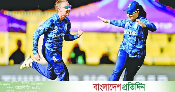গতকাল ভারতের গুয়াহাটিতে মুখোমুখি হয় ইংল্যান্ড-দক্ষিণ আফ্রিকার মেয়েরা। টস জিতে প্রতিপক্ষকে ব্যাটিংয়ের আমন্ত্রণ জানান ইংলিশ অধিনায়ক ন্যাট স্কাইভার ব্রান্ট। অধিনায়কের সিদ্ধান্ত সঠিক প্রমাণ করেন ইংলিশ বোলাররা। লিনসে স্মিথ মাত্র ৭ রান দিয়ে শিকার করেন তিনটি গুরুত্বপূর্ণ উইকেট। তিনি উইকেট থেকে বিদায় করেন প্রোটিয়া ব্যাটার লরা উলভার্ট (৫ রান), তাজমিন ব্রিটস (৫ রান) এবং ম্যারিজেন ক্যাপকে (৪ রান)। ৫ রান দিয়ে দুই উইকেট শিকার করেন ইংলিশ অধিনায়ক ন্যাট স্কাইভার। তিনি শিকার করেন অ্যানেক বোশ (৬ রান) ও ক্লো ট্রাইওনের (২ রান) উইকেট। দুটি করে উইকেট শিকার করেন ইংলিশ বোলার সোফি ও চার্লি ডিন। লরেন বেল শিকার করেন ১টি উইকেট। ২০.৪ ওভার খেলে মাত্র ৬৯ রানেই অলআউট হয়ে যায় দক্ষিণ আফ্রিকা। মেয়েদের বিশ্বকাপে এর চেয়েও কম রানে অলআউট হওয়ার রেকর্ড আছে প্রোটিয়াদের। ২০০৯ সালে নিউজিল্যান্ডের বিপক্ষে ৫১ রানে অলআউট হয়েছিল দক্ষিণ আফ্রিকার মেয়েরা। ৭০ রানের লক্ষ্যে খেলতে নেমে ১৪.১ ওভার খেলে কোনো উইকেট না হারিয়েই ৭৩ রান করে জয় তুলে নেয় ইংল্যান্ড। দলের পক্ষে ৫০ বলে ৪০ রান করেন অ্যামি জোনস। এ ছাড়া ট্যামসিন ৩৫ বলে ২১ রান করেন। এ জয়ে ২ পয়েন্ট সংগ্রহ করে রানরেটে এগিয়ে থাকায় শীর্ষে অবস্থান করছে ইংল্যান্ড। ২ পয়েন্ট করে সংগ্রহ করেছে অস্ট্রেলিয়া, বাংলাদেশ এবং ভারতের মেয়েরাও।
