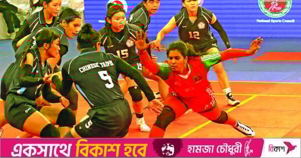 নারী কাবাডি বিশ্বকাপে ব্রোঞ্জ পদক নিয়েই সন্তুষ্ট থাকতে হলো বাংলাদেশকে। সেমিফাইনাল নিশ্চিত করার পরই পদক নিশ্চিত হয়েছিল রূপালীদের। চাইনিজ তাইপেকে হারালে ফাইনাল খেলার সুযোগ পেত বাংলাদেশ। তবে গতকাল মিরপুরের শহীদ সোহরাওয়ার্দী ইনডোর স্টেডিয়ামে সেমিফাইনালের লড়াইয়ে ২৫-১৮ পয়েন্টে চাইনিজ তাইপের কাছে হেরে গেছেন রূপালীরা। ২০১২ সালে পাটনায় হওয়া প্রথম নারী বিশ্বকাপে পঞ্চম হয়েছিল বাংলাদেশ। এবার নিজেদের দেশে তৃতীয় স্থান নিয়ে আসর শেষ করলেন রূপালীরা। গতকাল অপর সেমিফাইনালে ভারত ৩৩-২১ পয়েন্টে ইরানকে হারিয়েছে। ইরানের পরাজয়ের ব্যবধান ১২ পয়েন্ট। অন্যদিকে চাইনিজ তাইপের কাছে বাংলাদেশের হারের ব্যবধান ছিল ৭ পয়েন্ট। কম ব্যবধানে পরাজয়ের কারণে তৃতীয় হয়েছে বাংলাদেশ। ইরান হয়েছে চতুর্থ। ফাইনালে ভারত-চাইনিজ তাইপের মেয়েরা আজ মুখোমুখি হবেন। সুবাদে প্রথম আসরের তুলনায় দুই ধাপ উন্নতি করল বাংলাদেশ। গতকাল রূপালীরা দারুণ লড়াই করেছেন। প্রথমার্ধে ৮-৯ পয়েন্টে পিছিয়ে ছিল বাংলাদেশ। তবে দ্বিতীয়ার্ধের শুরুতে ১০-৮ পয়েন্টে এগিয়ে যান রূপালীরা। কিন্তু এরপর চাইনিজ তাইপের মেয়েরা ঘুরে দাঁড়ান। বাংলাদেশ এরপরও ম্যাচে টিকে থাকার চেষ্টা করেছে। তবে শেষদিকে চাইনিজ তাইপের মেয়েদের আধিপত্য রুখতে পারেননি বাংলাদেশের মেয়েরা। ম্যাচের পর বাংলাদেশের খেলোয়াড় স্মৃতি আক্তার বলেন, ‘আমরা অনেক ভালো লড়াই করেছি। চাইনিজ তাইপে অনেক ভালো দল। ওরা ইরানকে হারিয়েছে। আমাদের জেতার লক্ষ্য ছিল। তবে পারিনি। ওদের টেকনিক, ওদের গতি, ওদের মুভমেন্ট অনেক ভালো ছিল।’ তিনি আরও বলেন, ‘আমরা সন্তুষ্ট যে একটা পদক পেয়েছি। এ আসরের পর কাবাডিতে মেয়েরা আগ্রহী হবে।’ প্রথমবারের মতো বিশ্বকাপ থেকে জাতীয় খেলায় কাবাডিতে পদক এনে দিলেন বাংলাদেশের মেয়েরা।