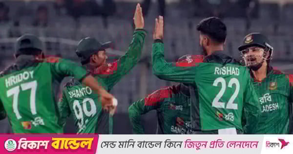 এর আগে টস হেরে ব্যাট করতে নেমে বাংলাদেশের শুরুটা ছিল বিপর্যয়কর। মাত্র ৮ রানে দুই ওপেনার সাইফ হাসান (৩) ও সৌম্য সরকার (৪) সাজঘরে ফেরেন। এরপর নাজমুল হোসেন শান্ত ও তাওহিদ হৃদয়ের ৭১ রানের ধীর জুটি কিছুটা স্থিতি আনে। ৬৩ বলে ৩২ রান করে আউট হন শান্ত।
