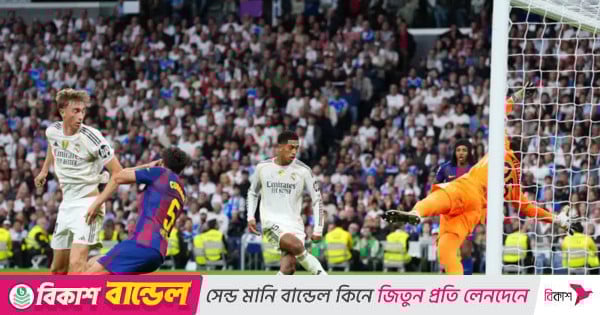 রবিবার (২৬ অক্টোবর) ২০২৫-২৬ মৌসুমের প্রথম এল ক্লাসিকোতে স্বাগতিকেরা ২-১ গোলের ব্যবধানে বার্সেলোনাকে পরাজিত করেছে। রিয়ালের হয়ে গোল দুটি করেন কিলিয়ান এমবাপ্পে ও জুড বেলিংহাম। বার্সেলোনার হয়ে একমাত্র গোলটি করেন ফারমিন লোপেজ।