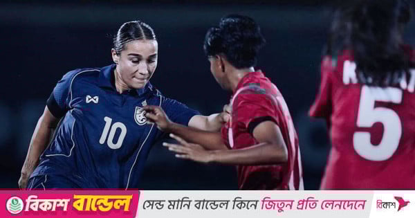 সোমবার ব্যাংককের চোনবুড়ি ইউনিভার্সিটি ফুটবল ট্রেনিং সেন্টারে প্রথমার্ধে ৩-১ গোলে পিছিয়ে থেকে শেষ করে বাংলাদেশের মেয়েরা।