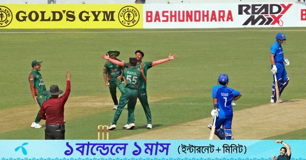 আজ মঙ্গলবার সকালে বগুড়া শহীদ চাঁন্দু স্টেডিয়ামে আফগানিস্তান ও বাংলাদেশের অনূর্ধ্ব-১৯ দলের দুই অধিনায়ক টস করতে নামেন। টসে জয়ী আফগান অধিনায়ক মাহবুব খান ব্যাটিং করার সিদ্ধান্ত নেন। ৫০ ওভারের খেলায় প্রথমে ব্যাট করে আফগানরা ৯ উইকেট হারিয়ে ২৬৫ রান সংগহ করেন। আফগান ব্যাটারদের মাঝে উজারাইল্লাহ ১৩৭ বলে ১৪০ রান সগ্রহ করেন। আফগানদের পক্ষে আর কোন ব্যাটসম্যানরা বড় ভূমিকা রাখতে পারেননি। উজারাইল্লাহকে সঙ্গ দিয়ে খালিদ ৩৪, ফয়সাল ৩৩ ও ওসমান ১৫ রান করেন। অপর পক্ষে বাংলাদেশের পক্ষে বোলার ইকবাল হোসেন ইমন ৫৭ রানে ৫টি, রিজান ৫৪ রানে ২টি এবং সবুজ ও তামিম একটি করে ইউকেট নেন। জবাবে বাংলাদেশ দলের কালাম সিদ্দিকী এলিনের সেঞ্চুরীতে ভর করে শেষ পর্যন্ত ৪৬ ওভারে ৪ উইকেট হারিয়ে ২৩১ রান সংগ্রহ করার পর আলো স্বল্পতা দেখা দেওয়ায় ম্যাচ আম্পায়ার দুই দলের অধিনায়করে সঙ্গে কথা বলেন। আলোর অভাব দেখা দিলে ক্রিকেট খেলার আইনে (ডিএলএস মেথড) বাংলাদেশ দলকে ৫ রানে জয়ী ঘোষণা করা হয়। ম্যাচে স্বাগতিকদের পক্ষে কালাম সিদ্দিকী এলিন ১১৯ বলে ১০১, রিজান ৯৬ বলে ৭৫ এবং রিফাত ২৬ রান করেন। বাংলাদেশ দলের জয়ে সবচেয়ে বড় ভূমিকা রাখেন এলিন। ফলাফল হিসেবে এলিন ম্যান অব দ্যা ম্যাচের পুরস্কারও পেয়ে যান। আর তাকে সঙ্গ দেন রিজান। বাংলাদেশ দলের ২ উইকেট পড়ার পর ইনিংসকে মেরামত করেন এই জুটি। এই জুটিই স্বাগতিকদের জয়ের ভীত গড়ে দেন। এর আগে টাইগার বোলার ইমন আফগানদের ব্যাটিং লাইন আপে ধ্বস নামান। আফগান বোলারদের মধ্যে ওয়াহিদুল্লাহ ৪৭ রানে ২টি, শাহীন ও নুরুস্তানি একটি করে উইকেট অর্জন করেন। টাইগার যুবাদের মধ্যে দলের হয়ে দায়িত্বপূর্ণ বোলিং করেন বোলার ইকবাল হোসেন ইমন।