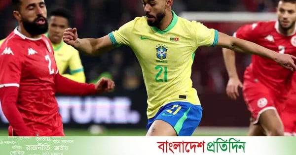 বিশ্বকাপ প্রস্তুতিতে আন্তর্জাতিক প্রীতি ম্যাচে ধাক্কা খেল ব্রাজিল। আগের ম্যাচে সেনেগালকে ২-০ গোলে হারানো দলটি তিউনিসিয়ার সঙ্গে মঙ্গলবার রাতে ১-১ গোলে ড্র করেছে। এ ম্যাচে অবশ্য জেতার দারুণ সুযোগ পেয়েছিল ব্রাজিল। কিন্তু লুকাস পাকেতার পেনাল্টি মিসে শেষ পর্যন্ত জিততে পারেনি দলটি।